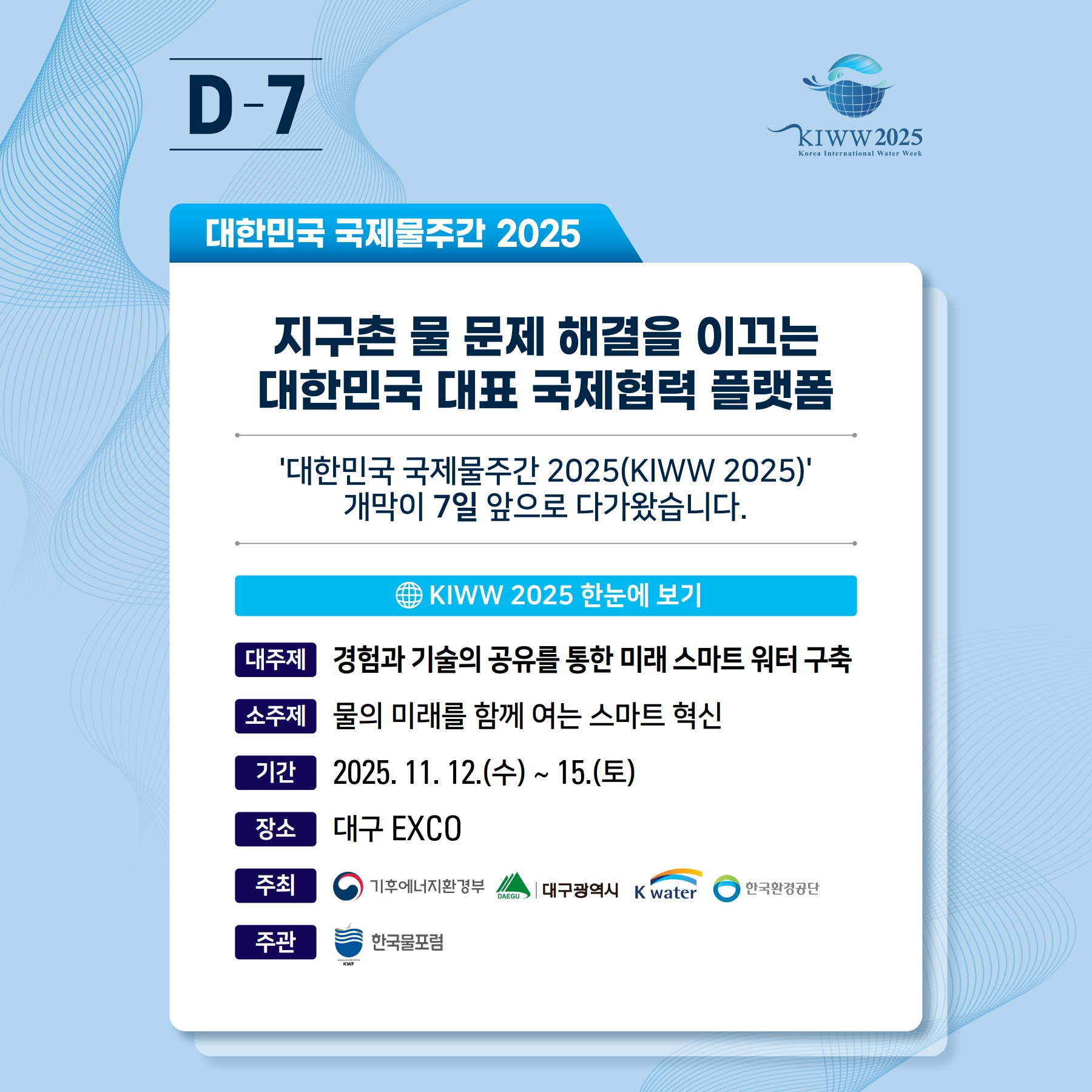 💧「대한민국 국제물주간(KIWW) 2025」 D-7!!